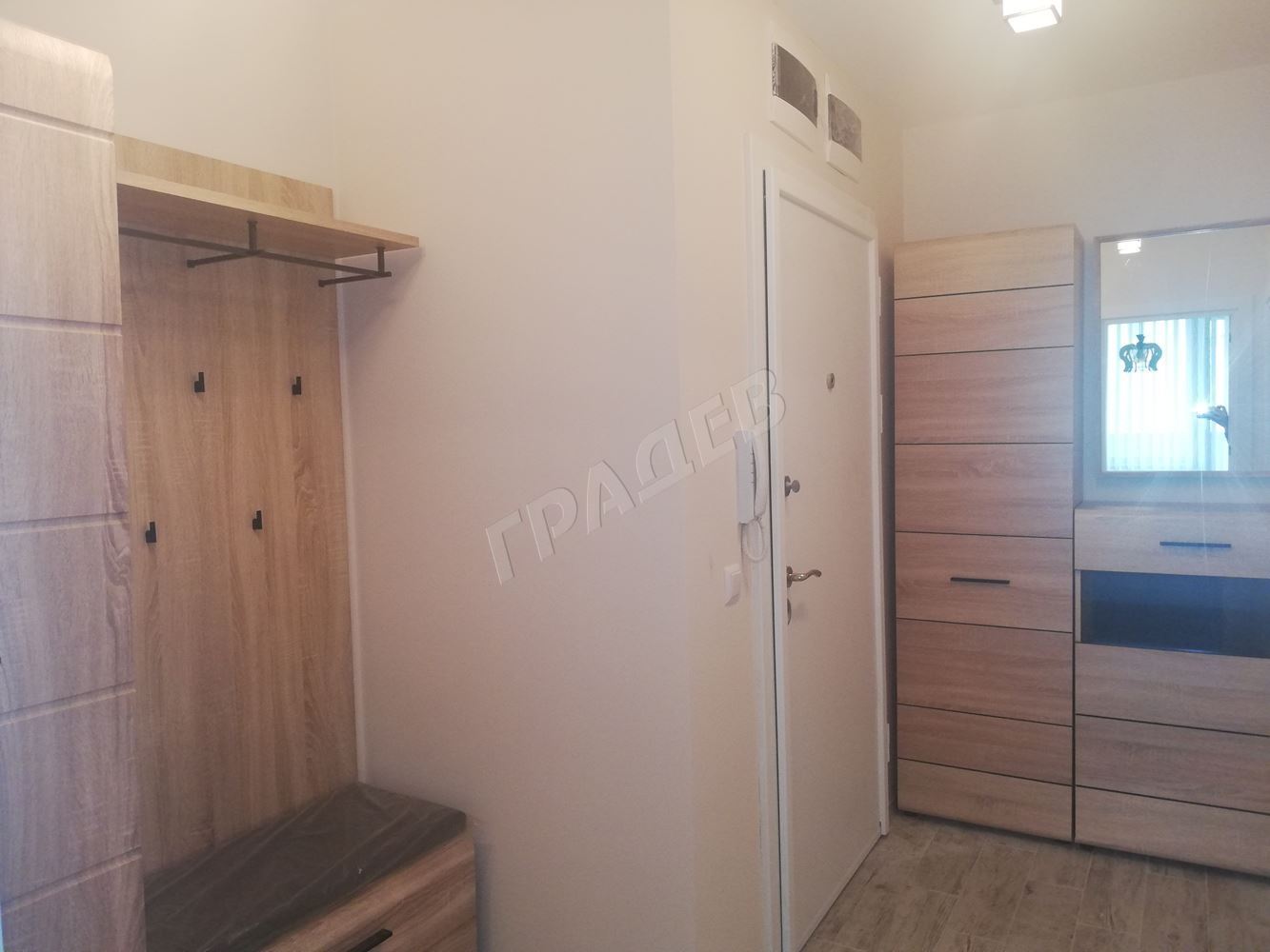САМО ОТ АГЕНЦИЯ ‘ГРАДЕВ’ : Двустаен с паркомясто в нова сграда. Състои се от дневна с кухня, спалня, баня-тоалет, тераса и коридор. Модерно и функционално обзавеждане и оборудване. Асансьор от кота 0 с топла връзка до паркинга и отлични общи части. В цената са включени интернет и телевизия от Виваком.