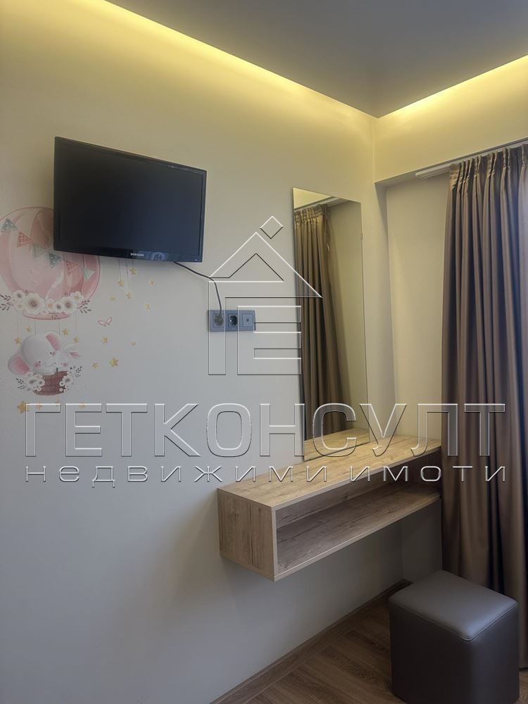 От 1 юли 2026 г. ГЕТ КОНСУЛТ отдава ексклузивно под наем преустроен панелен апартамент с квадратура от 68 кв м. Разпределението в момента е – дневна с кухня, холова стая, спалня, комбиниран санитарен възел, гардеробна-килер. Жилището е след основен ремонт и обзавеждане, с външна изолация, подово отопление в банята, сменена дограма, остъклена тераса. Всяка стая е с телевизор, холът може да се ползва за втора спалня. Налични са всички необходими ел уреди и мебели за комфортно обитаване, с внимание към детайла /климатик, пералня, отделна сушилня/. Втори етаж, асансьор. В наемната цена влиза такса за оптичен интернет. Ключ в офиса, за лесни огледи.