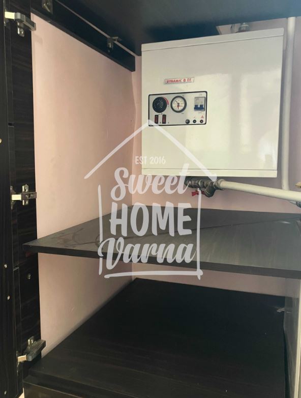 Екипът- Sweet Home Varna Ви предлага двустаен, луксозно обзаведен апартамент с чиста площ – 63 кв.м., находящ се до ‘Майчин дом’ в близост до ‘Базар Левски’.Състои се от : дневен тракт с кухненска част, една спалня, баня с тоалет и тераса. Отоплението е от локално парно с котел и алуминиеви радиатори, в стаите има климатици (Fujitsu), изградена е газова инсталация до котела и кухнята. Има слънчева инсталация със слънчев панел на покрива на сградата, за осигуряване на топла вода в бойлера. Апартамента е нов, не е обитаван, тъй като собственика му живее в чужбина. Всички уреди са неизползвани нови от марката (AEG), телевизорите (SONY). Напълно обзаведен и оборудван с всичко необходимо за едно домакинство.В близост: училище, детска градина, ясла,магазини, пазар Чаталджа, базар Левси,болница.За допълнителна информация и огледи цитирайте код: 4381 на тел.: 0895803009 Мария Лечева.